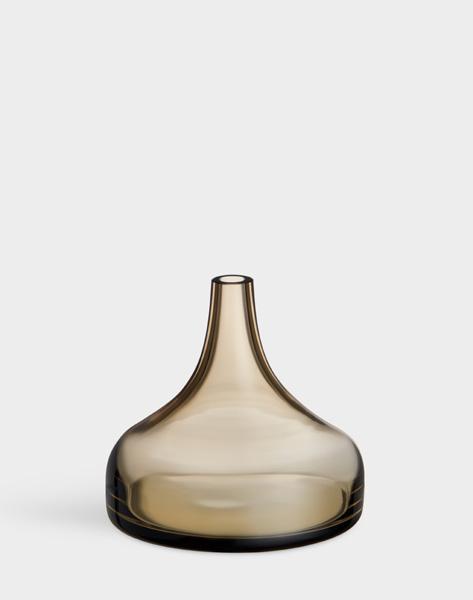 Like many other innovations, the idea for Squeeze arose by chance. While working on another shape entirely, Lena Bergström lost control of the sizzling, viscous glass, and the result was an asymmetrical inward bend. Inspired by her mistake, Bergström created Squeeze, intentionally reproducing its characteristic shape. The “squeezed” indentations interrupt the symmetry, while simultaneously serving a clear function: flowers placed inside are neatly held together rather than spread out, even those with only a few stems. The collection was first launched in 1997 and is available in multiple colors and sizes including the impressive new taller 500 mm version.