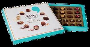 Innhold:Belgisk konfektsjokolade med fylte sjokoladebiter 200 g