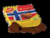 Innhold: 18 biter med dessertsjokolade 210 g med eget trykk i