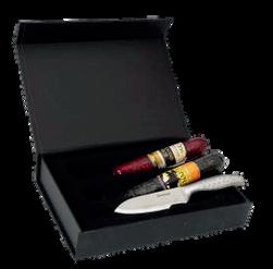 Innhold: Rødvinspølse 200 g, Elgpølse200g,kniv