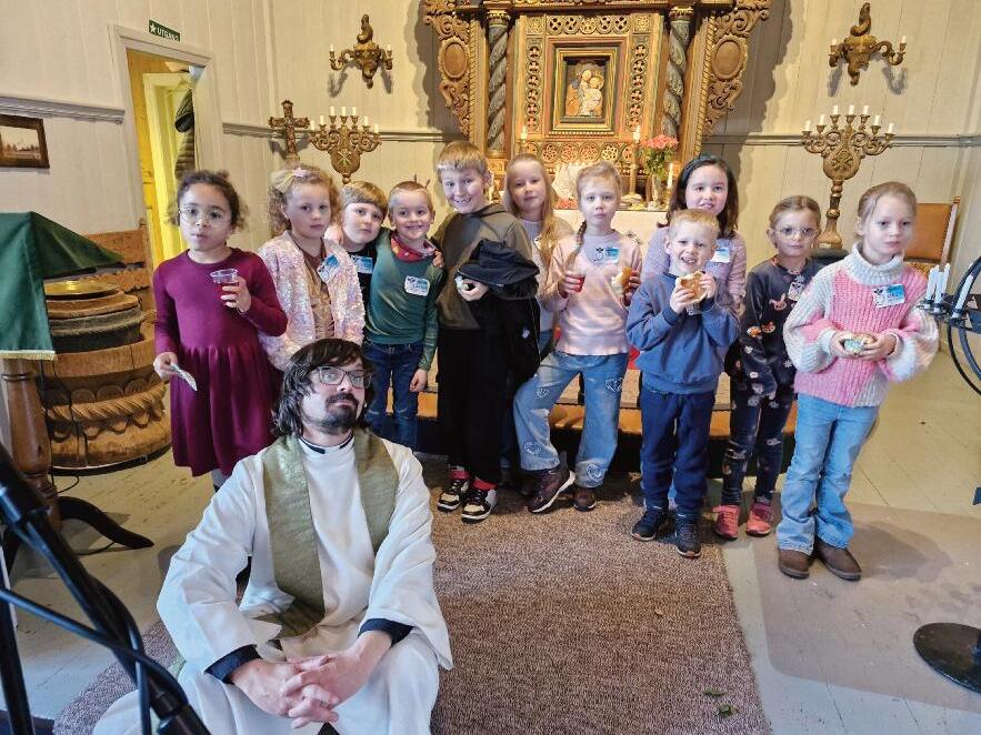 Det er et godt sted å være Jeg er døpt og konfirmer t i kirka, men er vel ikke troende. Forresten vet jeg ikke om det er så veldig mange, som har vær t med å be Fadervår og lest trosbekjennelsen høyt i kirka, så mange ganger som meg. (En fin måte å varme opp stemmebåndene på). Men jeg liker å være der, jeg liker miljøet, fordi jeg treffer så mange gode og varme folk der