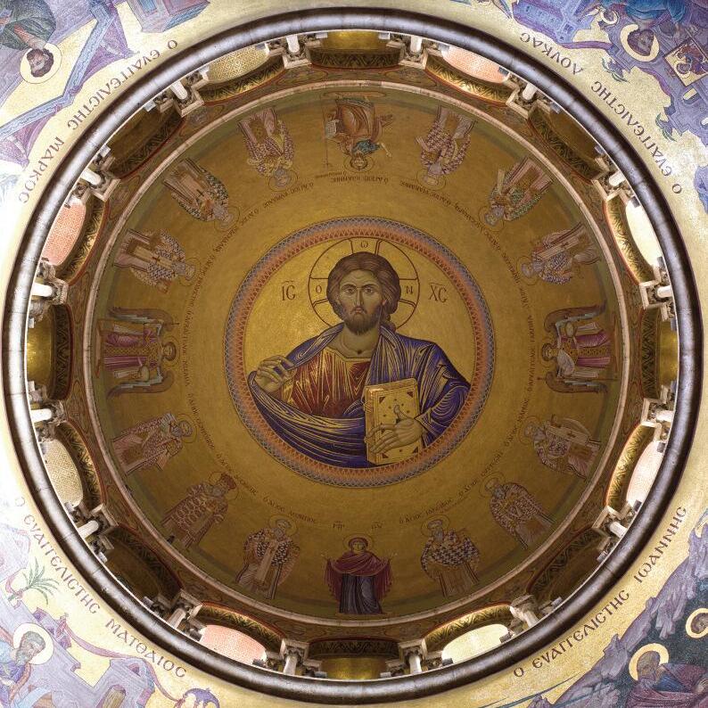 Bilde: Kristus som allherskeren, universets sentrum Freske i kuppelen i Gravkirken i Jerusalem (Kilde: Wikimedia Commons)
