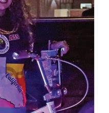 Many of the bikers show off some flair as they ride. Raymond Ybarra of Brawley rides a specially designed lowrider/chopper bike painted in gold flakes with highrise chrome handlebars.
