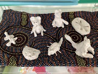Beyond drama, the children expressed their ideas through multiple creative mediums. In observational drawing, they studied and represented frogs, birds, and native animals, exploring shape, colour, and texture. In painting, they recreated watery landscapes, billabongs, and animals working together, using colour to convey mood and meaning. With clay, they sculpted Tiddalick and other characters, experimenting with form and structure to bring the story to life in three dimensions.