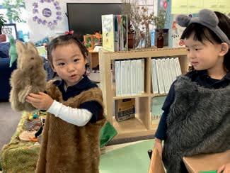 The Jacaranda children explored the story further through drama and role-play. They dressed as kookaburra, possum, dingo, koala, emu, wombat, frill-neck lizard, cockatoo, echidna, kangaroo, snake, and Noyang the eel. Costumes and props helped them step into character and transform their learning space into Tiddalick’s world.