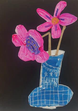 As the weeks went by, we challenged the children’s powers of observation, confidence and skills by offering a wide range of flowers to both draw, paint and collage, including a basket of flowers the children gathered on