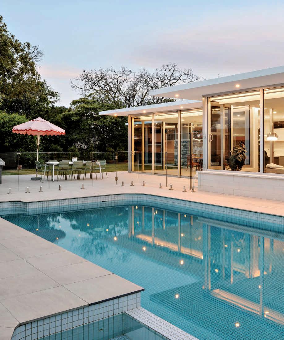Inspired by mid-century design and reimagined for contemporary living, this architecturally striking singlelevel residence delivers refined indoor-outdoor connection and glamorous poolside entertaining in a coveted Frankston South enclave.
