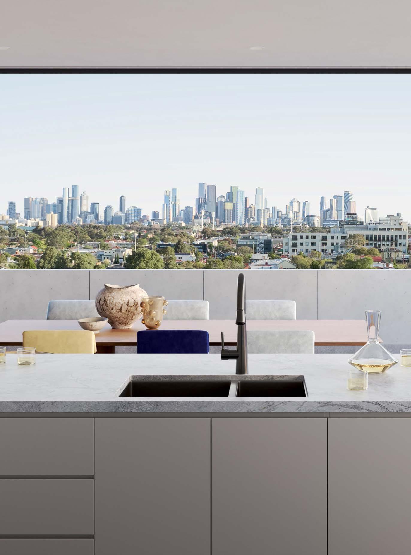 Chomley Terraces offers refined 3 and 4-bedroom townhouse’s in Prahran East offering living rooms that are a minimum 6m wide, 9ft ceilings, individual solar panels, EV ready and some with private lifts. Designed by Cera Stribley with landscaping by Andrew Panton Design, each residence also includes keyless entry and a 6y building guarantee.