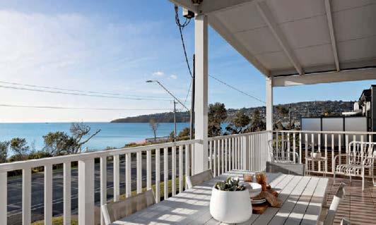 Set on an 889 sqm (approx.) fenced block in a secluded Blairgowrie cul-de-sac, this mudbrick and cedar home offers serene coastal living. Featuring cathedral ceilings, slate floors, a wraparound veranda, timber kitchen, and charming leadlight details, it includes a detached bungalow and north-facing garden terrace, moments from beaches, village, yacht squadron, and hot springs. ■