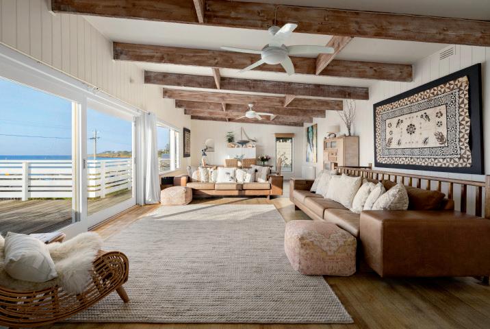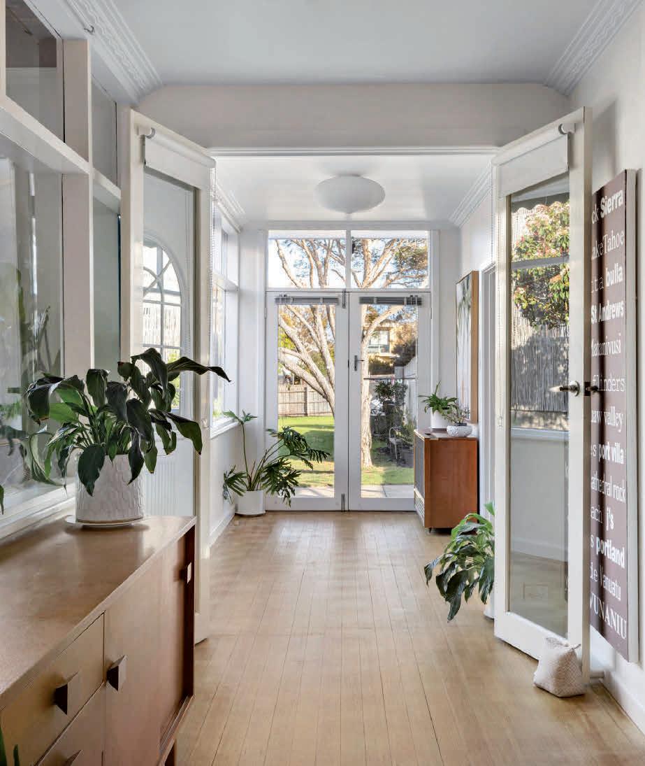 Thoughtfully maintained and enhanced, the four-bedroom, two-bathroom home celebrates mid-century design with Tassie oak floors, beamed ceilings, and original features including a built-in wet bar and pink bathtub. Contemporary updates complement the era’s charm, while multiple living zones open to terraces and gardens. Just metres from Fisherman’s Beach and a short walk to Mornington Harbour and Main Street, this is coastal modernism at its finest. ■