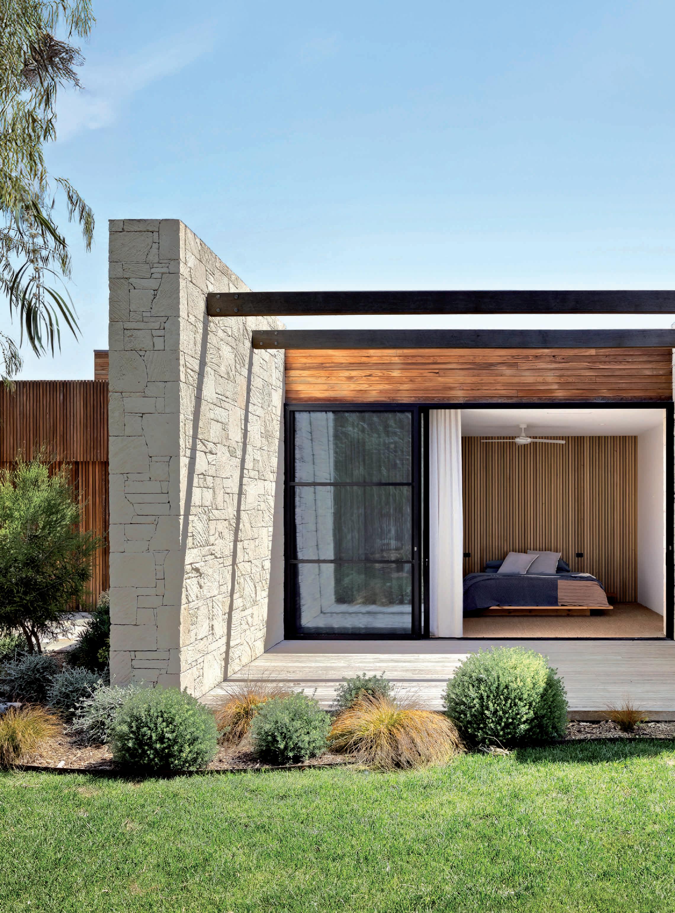 High timber-lined ceilings enhance architectural character and volume, while commercial-grade aluminium windows flood the open-plan living and dining areas with natural light. Carefully selected materials and construction ensure the home remains cool in summer and comfortable through winter.