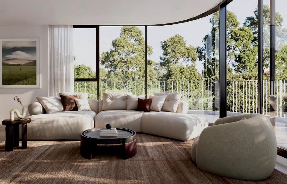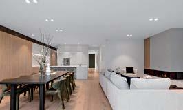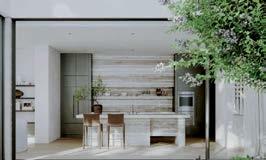 Introduced by an oversized pivot door, the ground floor unfolds to expansive living and entertaining spaces anchored by a sculptural curved staircase and shimmering pool outlooks through floor-toceiling glass. European oak floors, bespoke timber joinery and Taj Mahal stone create a refined, cohesive palette.