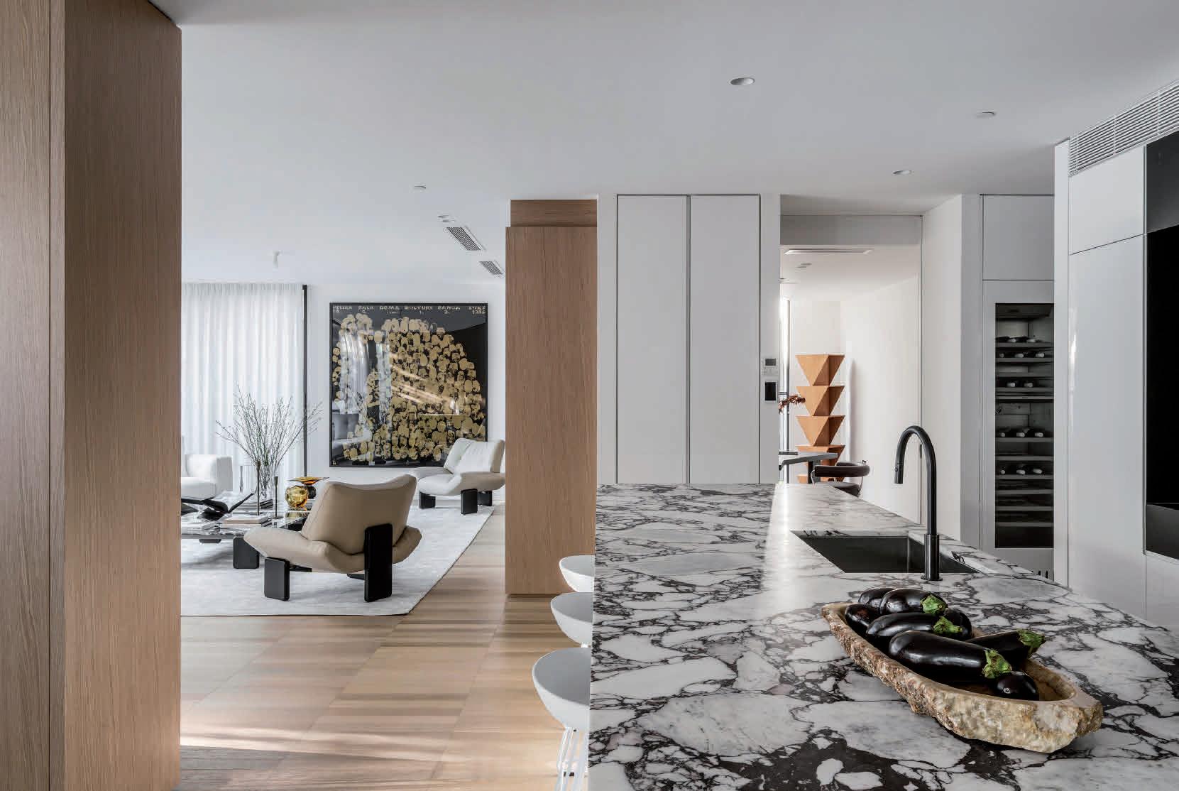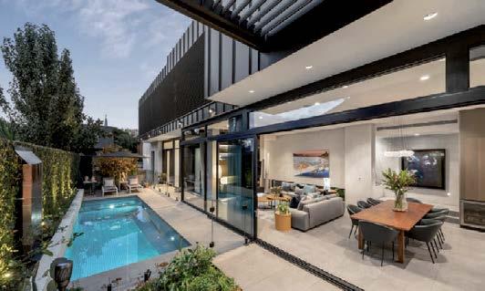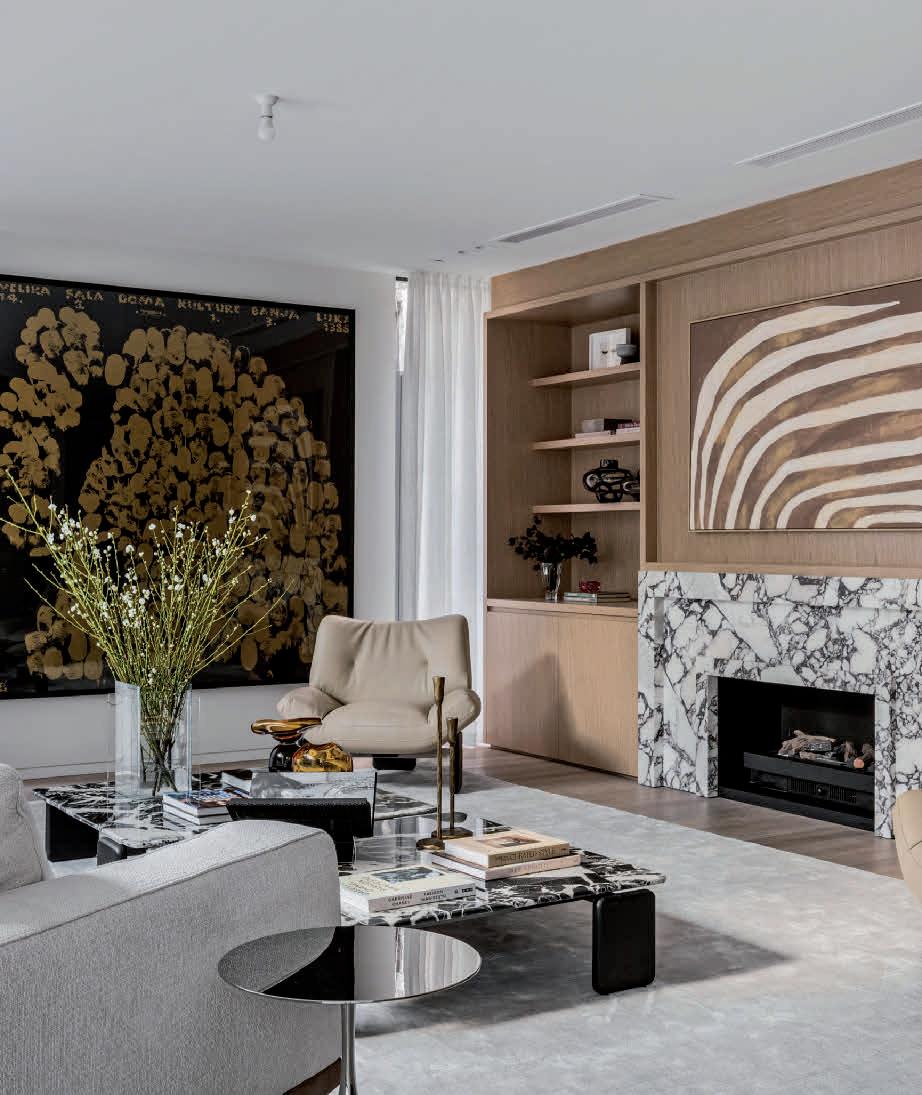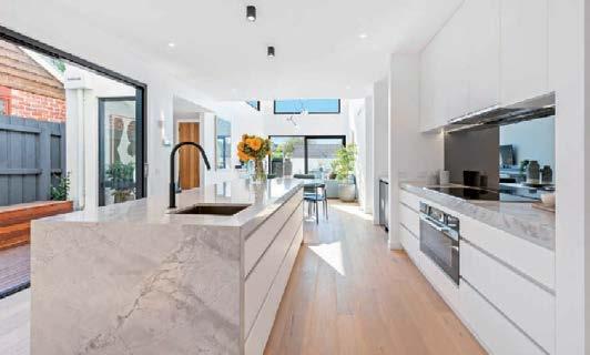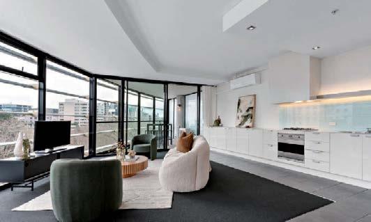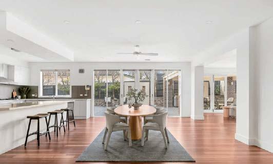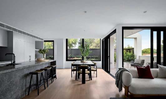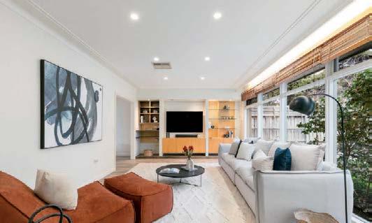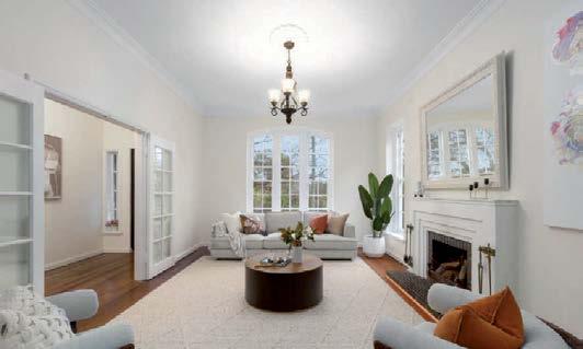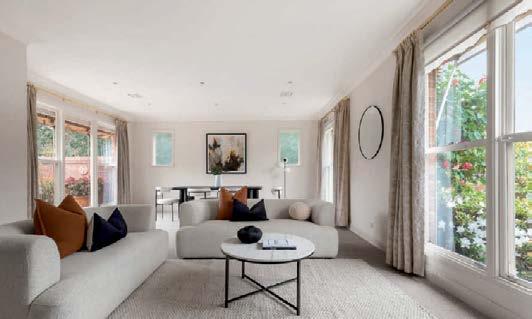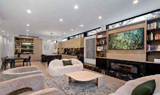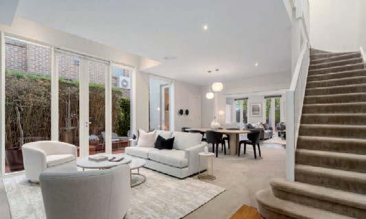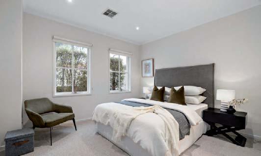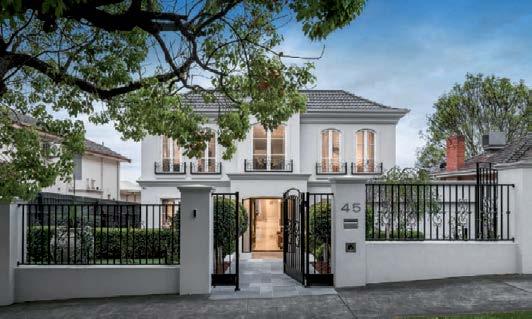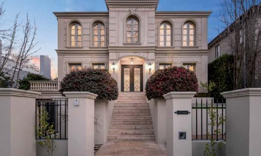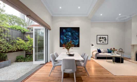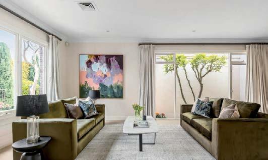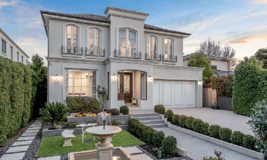 The gourmet kitchen showcases a Calacatta Viola marble island, Gaggenau appliances, and a butler’s pantry. Accommodation includes a luxurious main suite with ensuite and walk-in robe, two additional bedrooms with private courtyards, and a home office. Secure parking, modern conveniences, and a coveted Toorak address complete this rare offering. ■