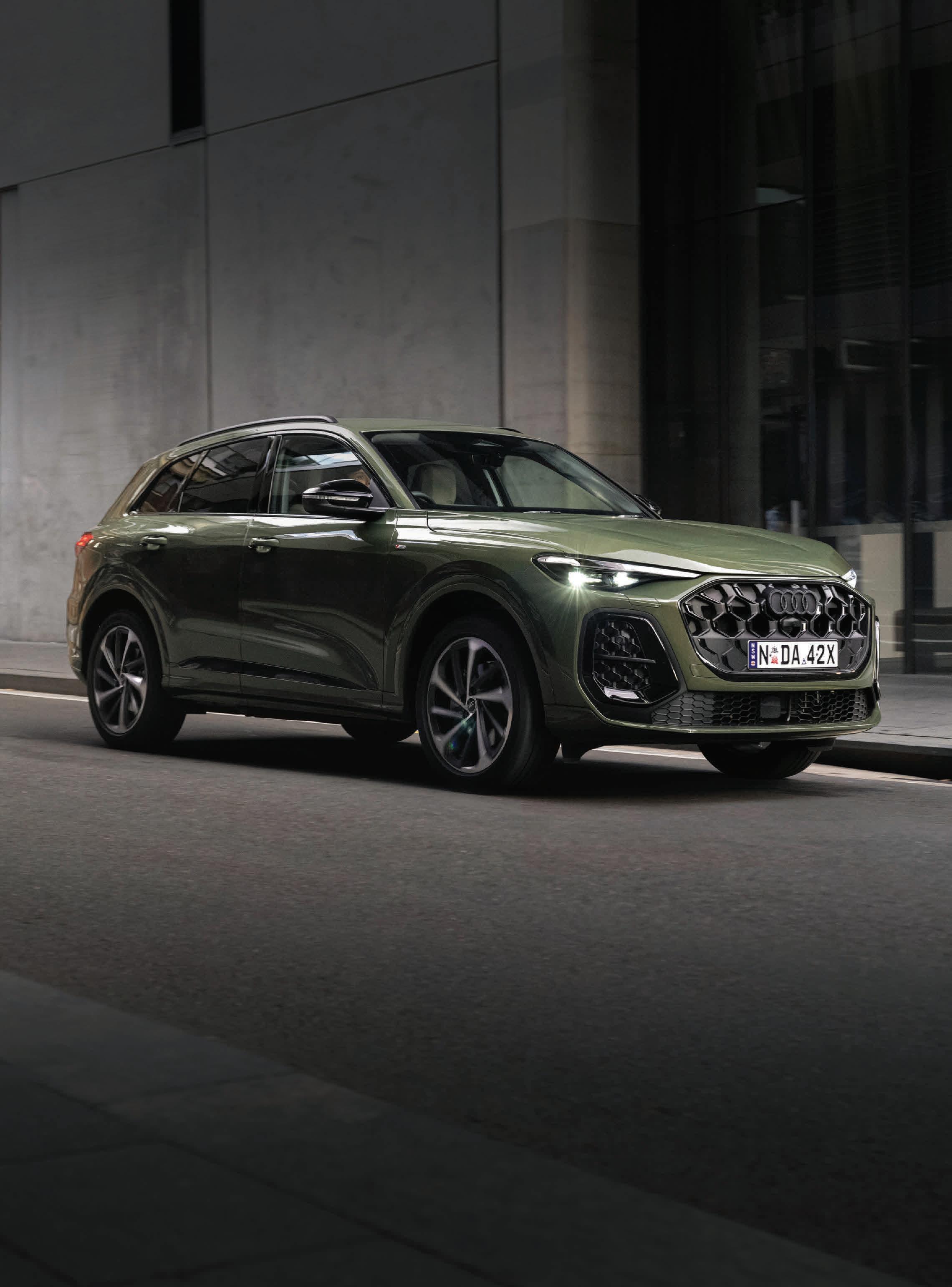 The Q5 has been one of Audi’s best-selling models worldwide, and it is easy to see why. The new generation continues this legacy, offering a choice of three engine options: a new entrylevel TFSI front-wheel drive, a TDI with quattro all-wheel drive, and the exhilarating SQ5 powered by a 270kW V6 TFSI engine. The latter doesn’t just look fast; it sprints from 0-100km/h in an impressive 4.5 seconds. Whether you are seeking efficiency, allterrain confidence, or pure driving excitement, there’s a Q5 to suit every lifestyle.