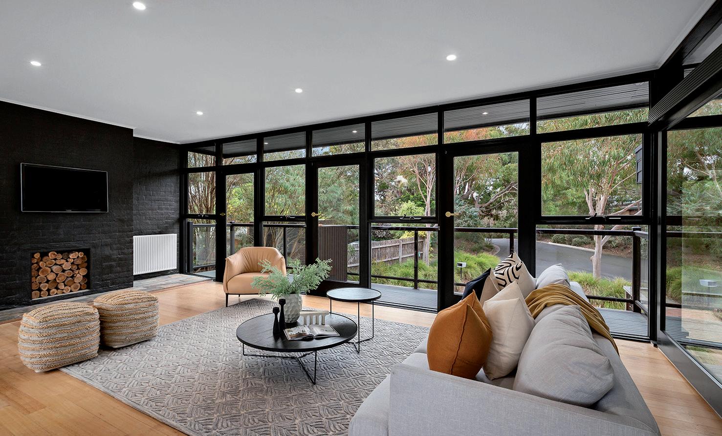 Tucked at the end of an exclusive cul-de-sac, this elevated contemporary residence delivers exceptional privacy and effortless living amid landscaped gardens and a tranquil pool backdrop. Expansive glazing, high ceilings and warm timber finishes connect seamlessly with nature, while generous indoor-outdoor zones and refined interiors create an inviting, familyfocused lifestyle. ■