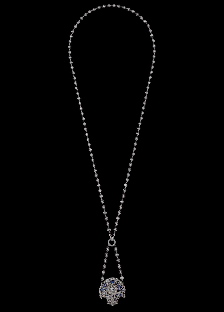 FLORAL BASKET PENDANT WATCH CARTIER PARIS, 1909 Platinum, pink gold, diamonds, enamel Owned by Nellie Melba Cartier Collection Nils Herrmann, Cartier Collection © Cartier