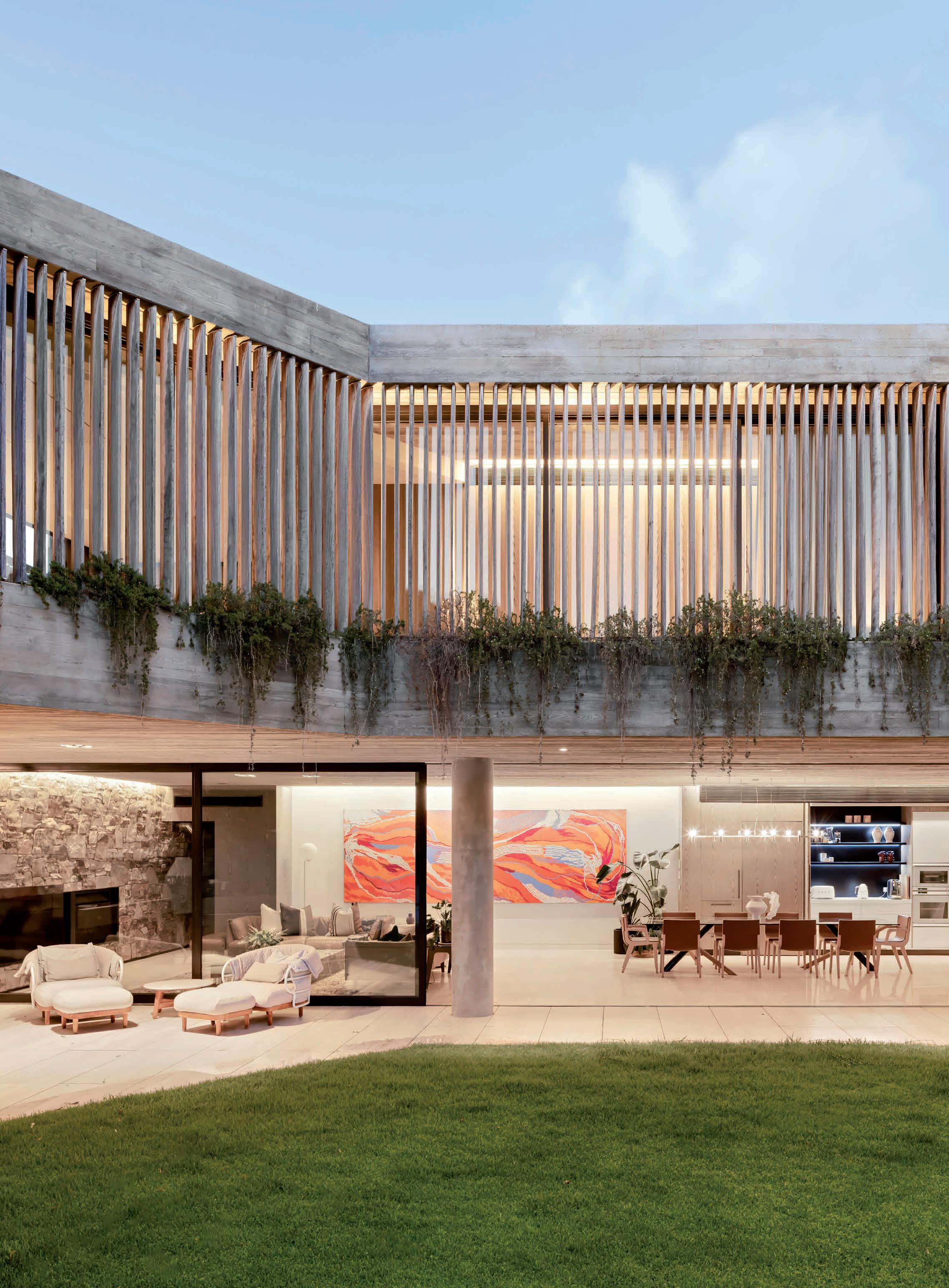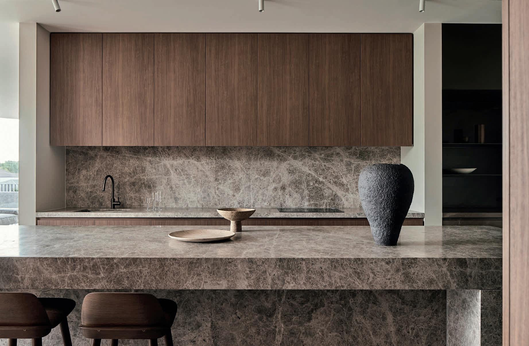 Celebrated as one of Elwood’s most significant architecturally extended Edwardian residences, this five-bedroom, six-bathroom home on 1140sqm (approx.) between the Village and the Beach has been reimagined as a multi-generational family sanctuary centred around effortless living and exceptional entertaining. Beyond its traditional façade, an extraordinary tri-level concrete and glass extension by Hayball Architects, constructed by Hickory Group, introduces a bold contemporary dimension defined by gallery-like interiors, floor-to-ceiling glazing, and a refined palette of travertine, spotted gum and limestone. The expansive living and entertaining domain is anchored by a Gaggenau-appointed kitchen and extends to a resort-style heated mineral pool and spa, while the basement level reveals a five-star cocktail bar, gym and eight-car showroom garage enhanced by bespoke mural artworks. Privately positioned within Elwood’s prestigious Golden Mile, the home offers lift access, premium wellness inclusions and sophisticated automation, just moments from the beachfront and Ormond Road’s vibrant cafés and boutiques. ■
