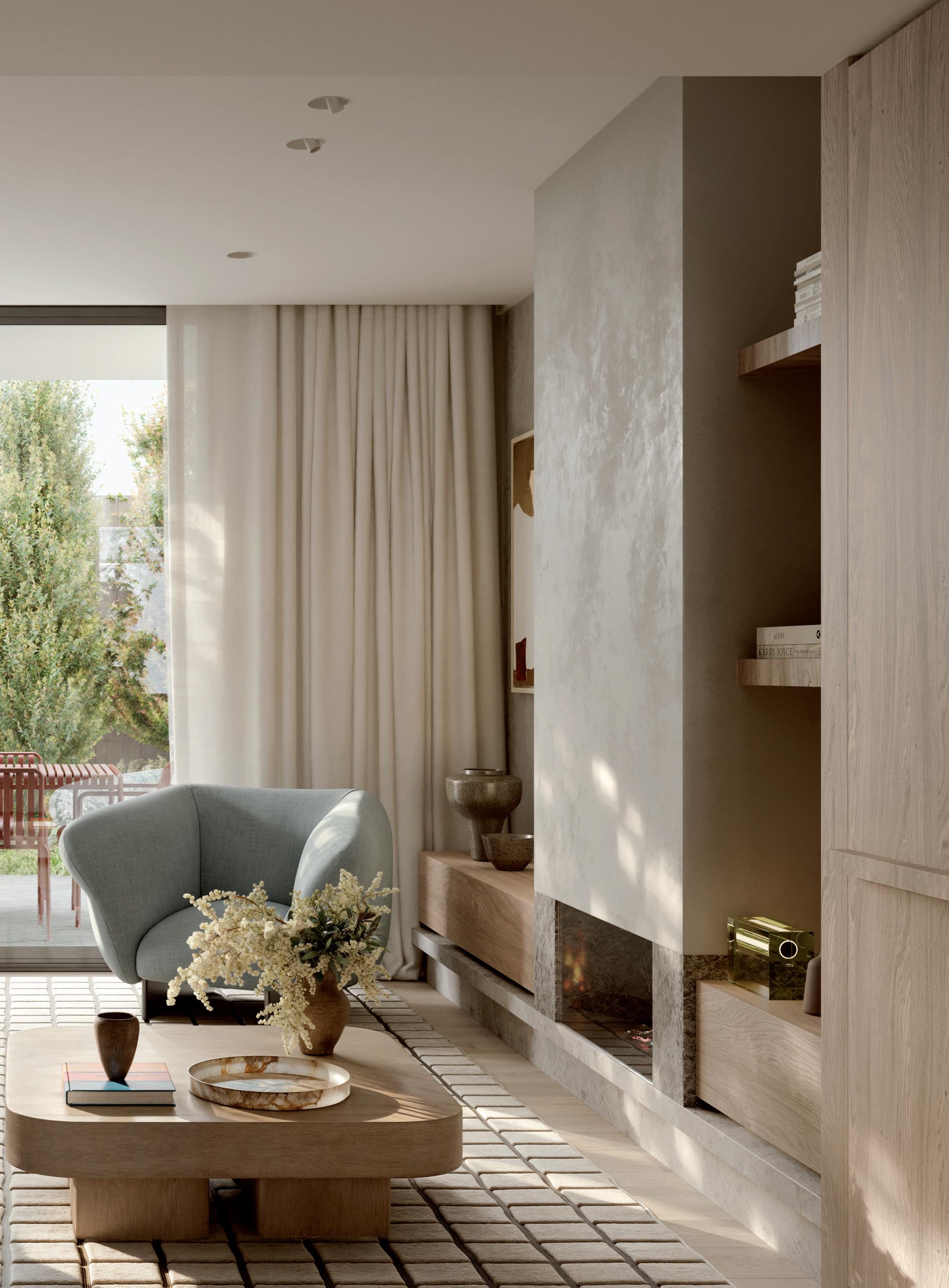 A carefully designed extension introduces warm timber panelling, a tranquil bedroVom retreat, study nook and reading room, creating peaceful spaces for rest and reflection. ■
