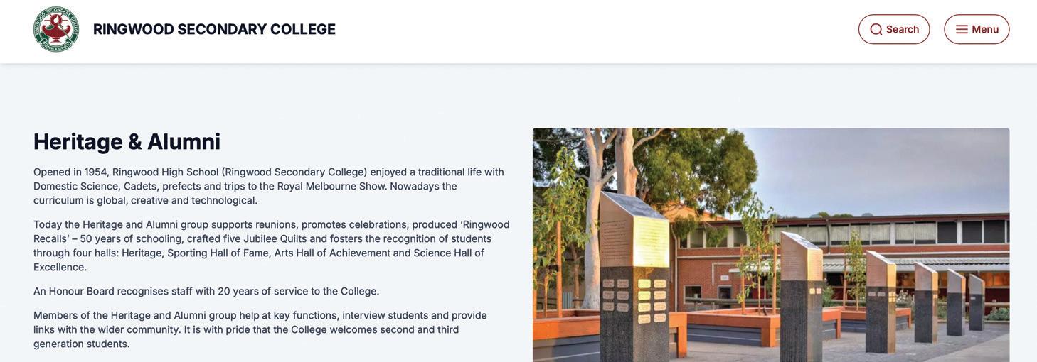 Throughout the year, the group has worked with the principal and others, to refresh the look and function of the Heritage and Alumni page on the school website.
