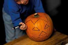 1. Tegn først – kutt etterpå Start med å markere mønsteret med tusj eller penn. Det er helt opp til deg hvordan du ønsker at det skumle fjeset skal se ut.