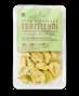 Del tomatene i fire båter. Skjær kyllingen i små terninger. Strø pinjekjernene i en panne. Tilsett 1 ts olivenolje og et dryss flaksalt. Stek forsiktig til pinjekjernene er gylne. Ha i en bolle og sett til side. Kok tortelloni som anvist på pakken. Spar på litt av kokevannet. Stek kyllingterningene i pannen med olivenolje. Salte og pepre. Ha den ferdigkokte pastaen i pannen. Tilsett tomatene. Hell to spiseskjeer pastavann over retten og beveg pannen. Hvis pastaen trekker til seg all væske, tilsetter du et par spiseskjeer til med pastavann. Dryss over hakkede basilikumblader og pinjekjerner.