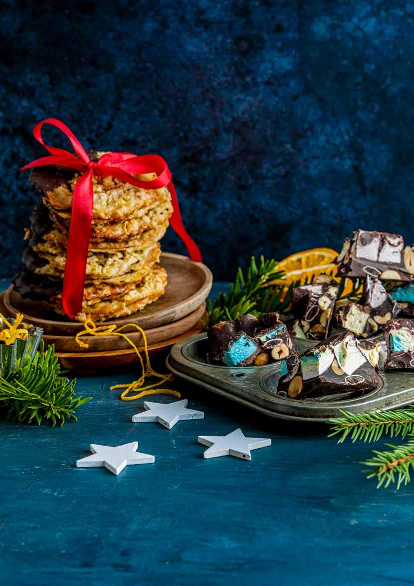 Spiselige julegaver er morsomme å lage og supre å gi bort. Lag doble havreflarn med sjokolade, deilige fløtekarameller, hjemmelaget granola, knekkebrød eller smaksbomben rocky road. Ha godsakene over på glass eller i pene bokser – og pakk inn med gråpapir og sløyfebånd. En koselig gave som garantert faller i smak hos mottageren!