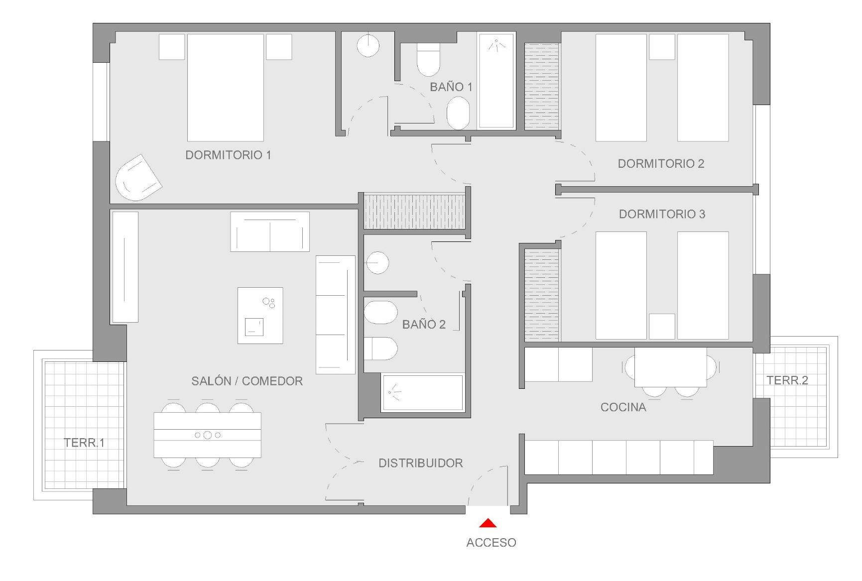 En la publicación se adjuntan planos orientativos tanto del estado actual como de dos posibles opciones de reforma. Las imágenes que siguen a dichos planos, son infografías, recreaciones virtuales de algunas estancias tras una reforma. Reforma no incluida en el precio de venta.