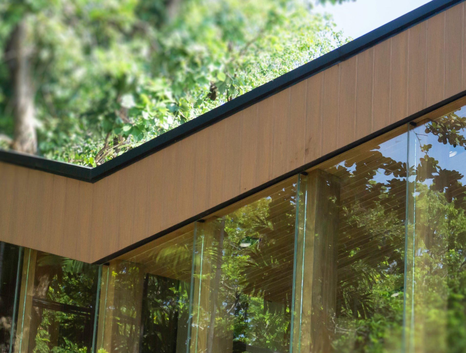 / In lieu of gutters, rain gardens collect and filter rainwater for reuse.