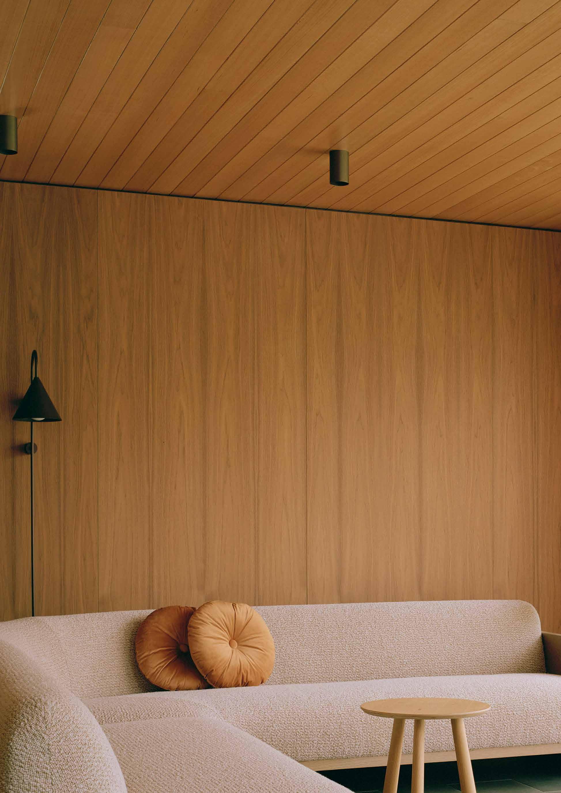 Flooring is North American Maple, sourced from leftover stumps, providing both durability and environmental sustainability. Perforated corrugated iron, a novel application that Codd first developed for a courthouse, provides acoustic benefits and ventilation in external ceilings. External cladding is Alucobond, typically used in high-rise buildings, and chosen for its longevity and low maintenance requirements.