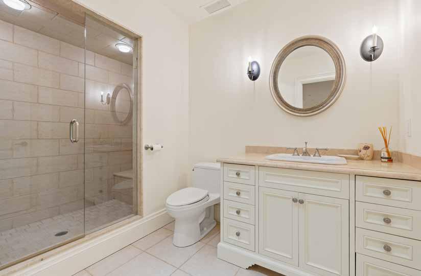 • Dark vanity w/granite counter Wall sconces & pot lighting.
