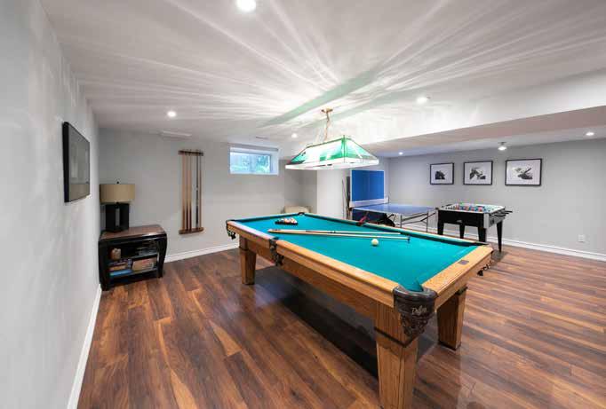 The home offers five luxurious bedrooms above ground, each with its own ensuite bathroom. The main level features two bedrooms, including the primary suite with an impressive six-piece ensuite bathroom featuring separate his and hers vanities. The second floor includes three additional bedrooms, all designed for comfort and privacy, along with a versatile recreation area perfect for family gatherings or a children’s play zone.