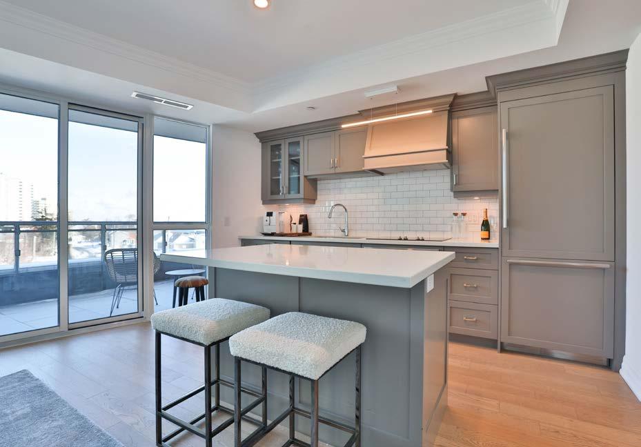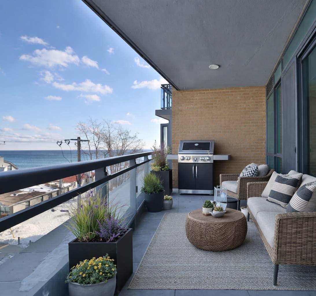This exceptional 2 bed,2 bath corner suite offers a blend of elegance, comfort and breathtaking surroundings with coveted north and east exposures and stunning Lake Ontario sunrise views. Bright and spacious, the suite features high ceilings, floor-to-ceiling windows and two walkouts that flood the home with natural light. Enjoy seamless indoor-outdoor living with two large private balconies equipped with natural gas and water hookups ideal for entertaining and relaxing by the lake. Refined finishes elevate every detail and include hardwood flooring, marble and porcelain tile, tray ceilings, crown moulding, pot lights, Kohler fixtures, custom closet built-ins and high-end appliances. The open-concept living/dining area flows effortlessly into a gourmet kitchen showcasing Barzotti cabinetry with valence lighting, integrated Thermador appliances, a large island, quartz countertops and subway tile backsplash. The luxurious primary suite offers a walk-in closet with built-ins, a walkout to a spacious balcony and a spa-inspired 5-piece ensuite complete with heated floor, soaker tub, frameless glass shower and double vanity. The second bedroom features a heated floor, a walkin closet with built-ins and expansive windows. A stylish 3-piece ensuite and laundry closet provide for additional functionality and convenience. Included are a preferred parking space and a large double-size locker. Residents enjoy world-class amenities including 8th-floor terrace with BBQs and panoramic lake views, two fitness centres, party room with billiards and piano, spa-like indoor pool, boutique-style lobby with 24hour concierge, direct access to the Pearl Hotel, Isabelle’s Restaurant, Pearl Café, and monthly social events—all redefining waterfront luxury living. This is the epitome of urban luxury-don’t miss this exceptional opportunity.