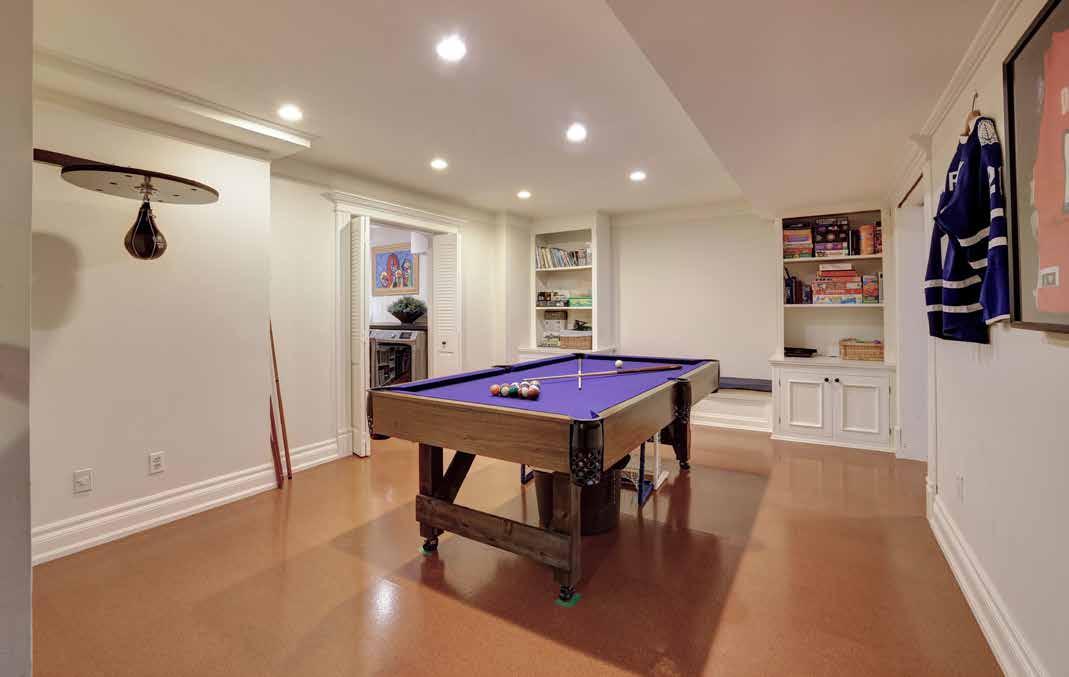 • Built-in wet bar, refrigerator, dishwasher, cork flooring, full bathroom, games room, storage and walk-up to the backyard