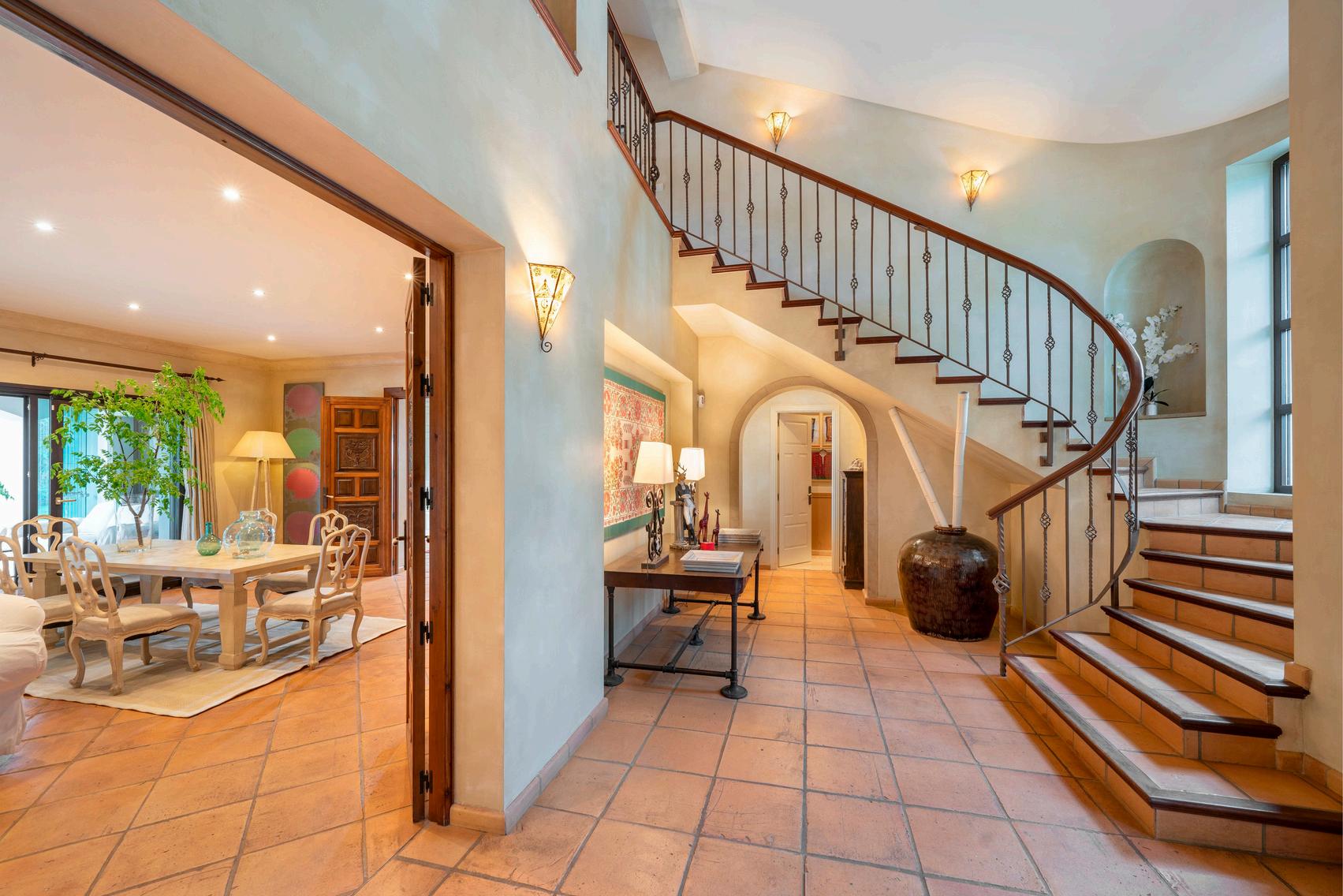 The main floor features a daytime area with large interconnected spaces, the kitchen with a central island, open to a dining area and living room; the living room with several connected environments leading to the garden through a glass porch, allowing you to enjoy this area with dining, relaxation, and porch lounge throughout the year thanks to its glass curtains. Next to the living room is a recreational room, ideal for work or playing the piano with beautiful views of the courtyard and a relaxing fountain. The en-suite bedroom and master bedroom with shower and jacuzzi overlook the garden where you'll find a spectacular heated saltwater pool.