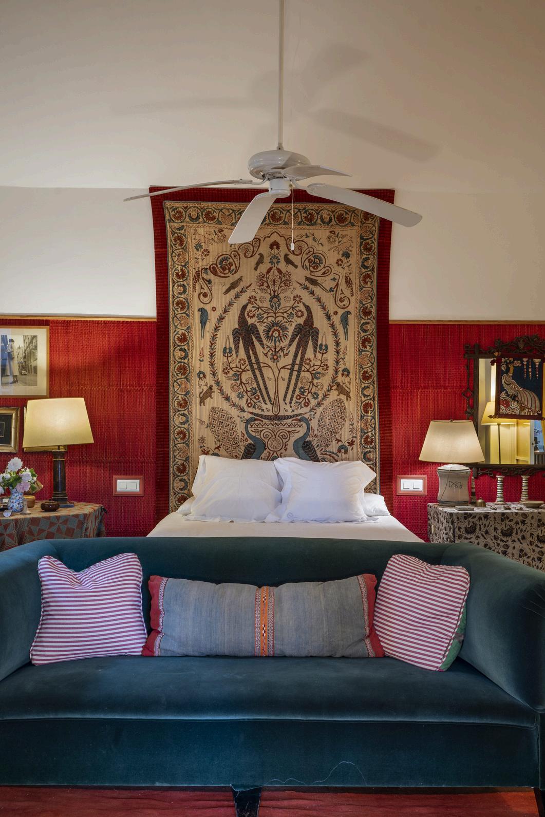 We cannot overlook the meticulous and sophisticated elegance of the interior decoration work, where hand-dyed fabrics, tapestries brought from distant travels, furniture acquired from all over the world, paintings, ceramics, art, are present in each and every room, once again achieving the set objective, a cozy country house that, by combining styles, exceeds expectations and turns it into a complete experience that you do not want to leave