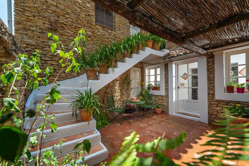 Through a beautiful cobblestone path lined with fountains and pergolas of virgin vines and blackberries, we arrive at a 108 m² STUDIO-HOUSE with a separate kitchen, a bedroom with an ensuite bathroom, a living room with a fireplace, and its own patio