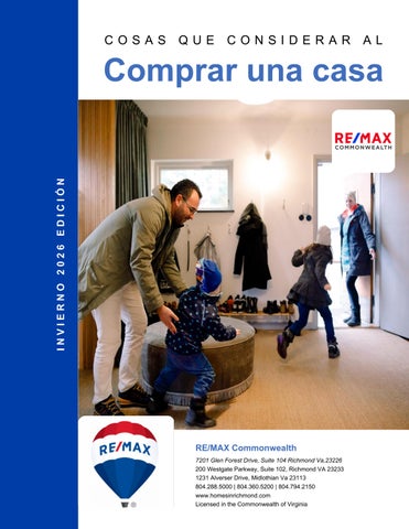 RE/MAX Commonwealth 7201 Glen Forest Drive, Suite 104 Richmond Va,23226 200 Westgate Parkway, Suite 102, Richmond VA 23233 1231 Alverser Drive, Midlothian Va 23113 804.288.5000 | 804.360.5200 | 804.794.2150 www.homesinrichmond.com Licensed in the Commonwealth of Virginia