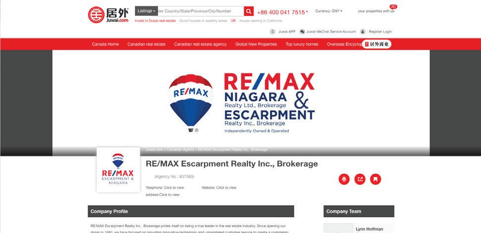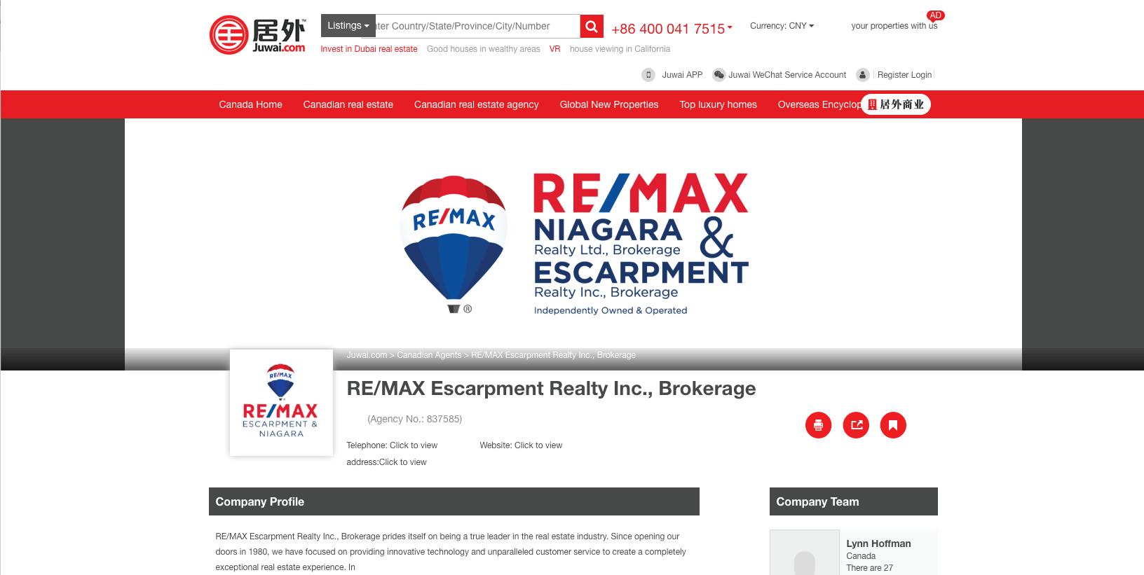 For International Agents, Juwai provides a full range of services to help Agents get their properties sold all over Asia in the right language. RE/MAX Escarpment & Niagara is proud to recently partner with Juwai to provide our Agents with research, statistics and reach within today’s massive audience of Asian overseas Buyers.