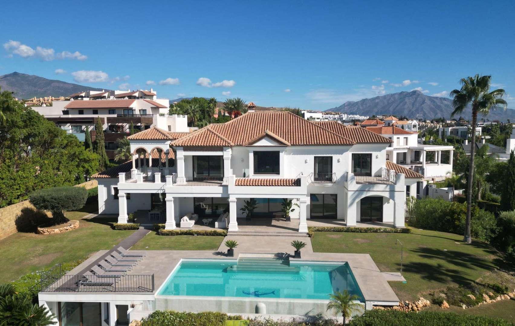 Villa independiente en venta en Nueva Andalucía, Marbella. Ubicación privilegiada y vistas al mar. En una de las zonas más cotizadas de Marbella, en la exclusiva Avenida del Generalife 28, se encuentra esta magnífica villa independiente sobre una amplia parcela en esquina de 1.755 m2, con orientación sur-suroeste y espectaculares vistas al mar y Gibraltar. Su ubicación estratégica combina privacidad y tranquilidad con una excelente conexión a todos los servicios, colegios internacionales, campos de golf y Puerto Banús. La propiedad, con 700 m2 construidos según catastro, ofrece amplios espacios ideales para la vida familiar.