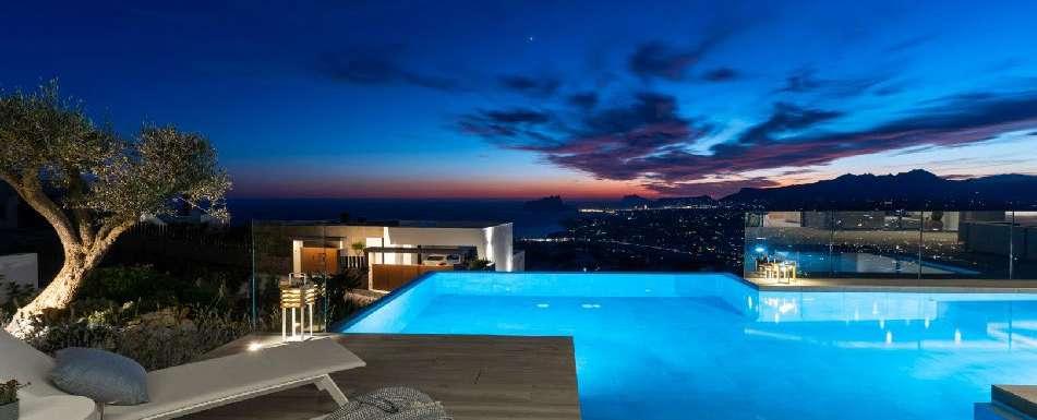 Design, quality, and spectacular sea views at Villa Veleta, a wonderful luxury villa in Spain, on the Costa Blanca, in the exclusive Jazmines area of the Cumbre del Sol residential complex. The property is built on a 1,168 m² plot, facing southwest, allowing us to enjoy breathtaking sunsets. Everything about this luxury villa exudes quality and style. Its elegant and timeless design gives it the ability to withstand the passing of time with character and its own identity, making it an icon of Cumbre del Sol. Villa Veleta represents luxury in Spain, a luxury villa created to enjoy the Mediterranean climate,