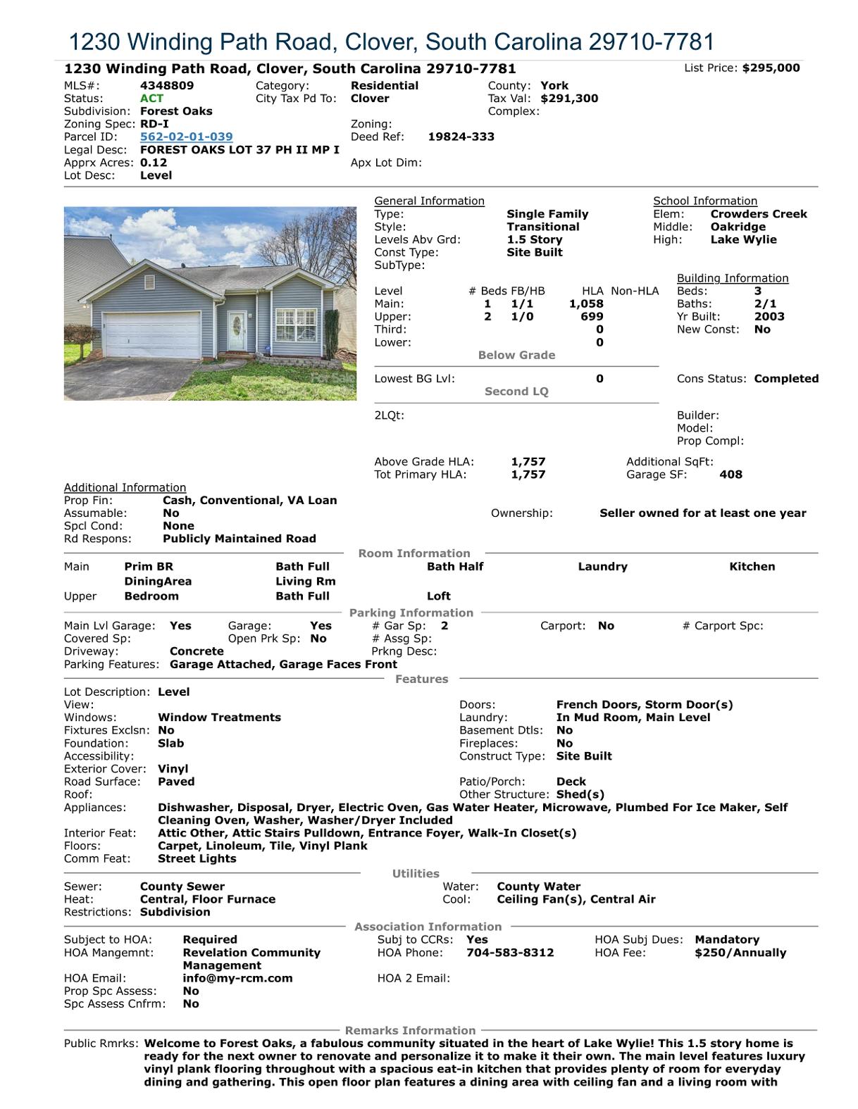Welcome to Forest Oaks, a fabulous community situated in the heart of Lake Wylie This 1.5 story home is ready for the next owner to renovate and personalize it to make it their own