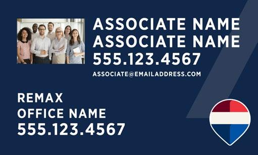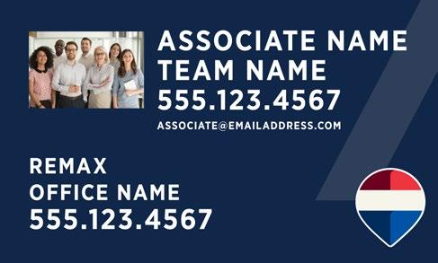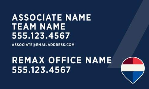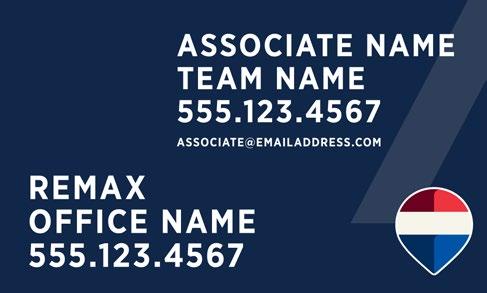 Include the postal address of the REMAX office on all REMAX marketing, such as brochures, listing presentations, websites, social media, etc. and on all marketing outside the brokerage’s local market area. The office address may be omitted from items such as billboards or bus benches if it is not practical to include it due to space limitations. Associate or team contact information such as a phone number, email, website or social profile can be included as long as the office contact information is included and clearly labeled. Affiliate marketing materials cannot contain a home address or any address other than the office address.