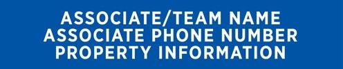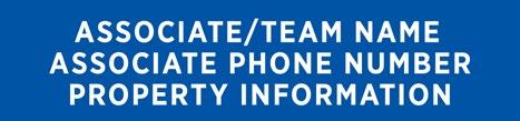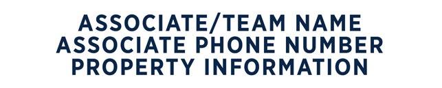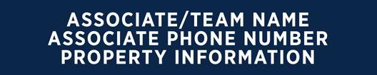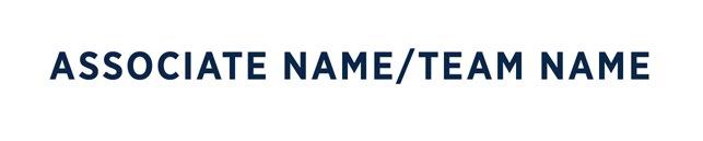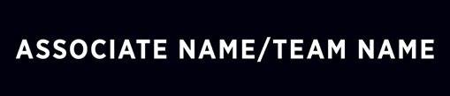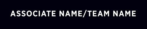 C Associate/Team Name: Gotham Narrow Bold. 130 pt. (165 pt. allowed if only information above office name is the Associate name, and no Associate phone number or email address is included). All caps. White type. Tracking preferred to fit a longer name. May use two lines for longer names. Font size as small as 120 pt. allowed where local rules require the brokerage name to be as large as or larger than the sales associate or team name.