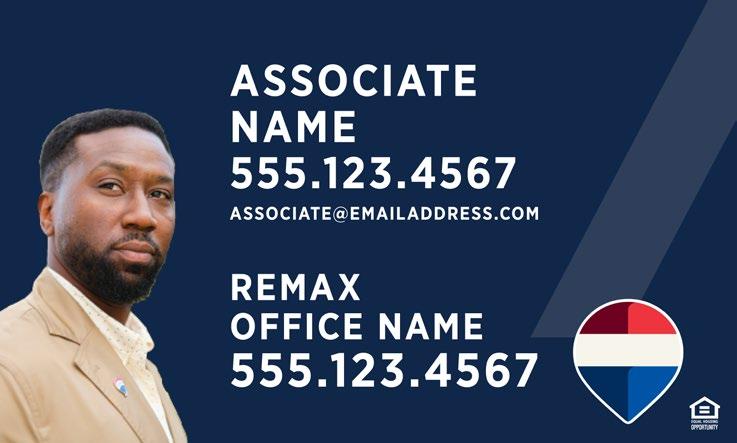 A top sign rider with an associate photo may be used only with a REMAX property sign that doesn’t contain a photo. The photo must be placed and sized as shown on page 39 of the Manual.