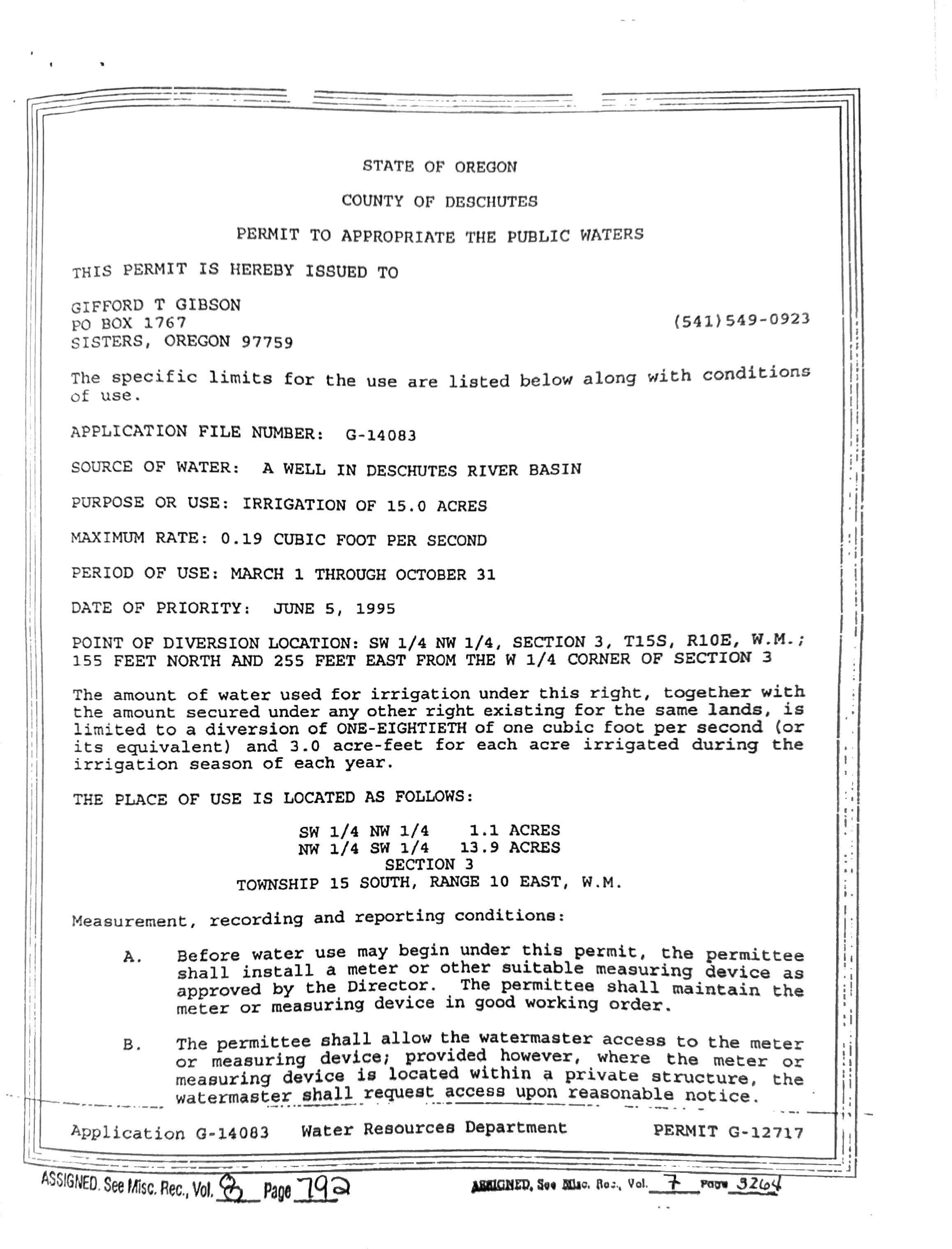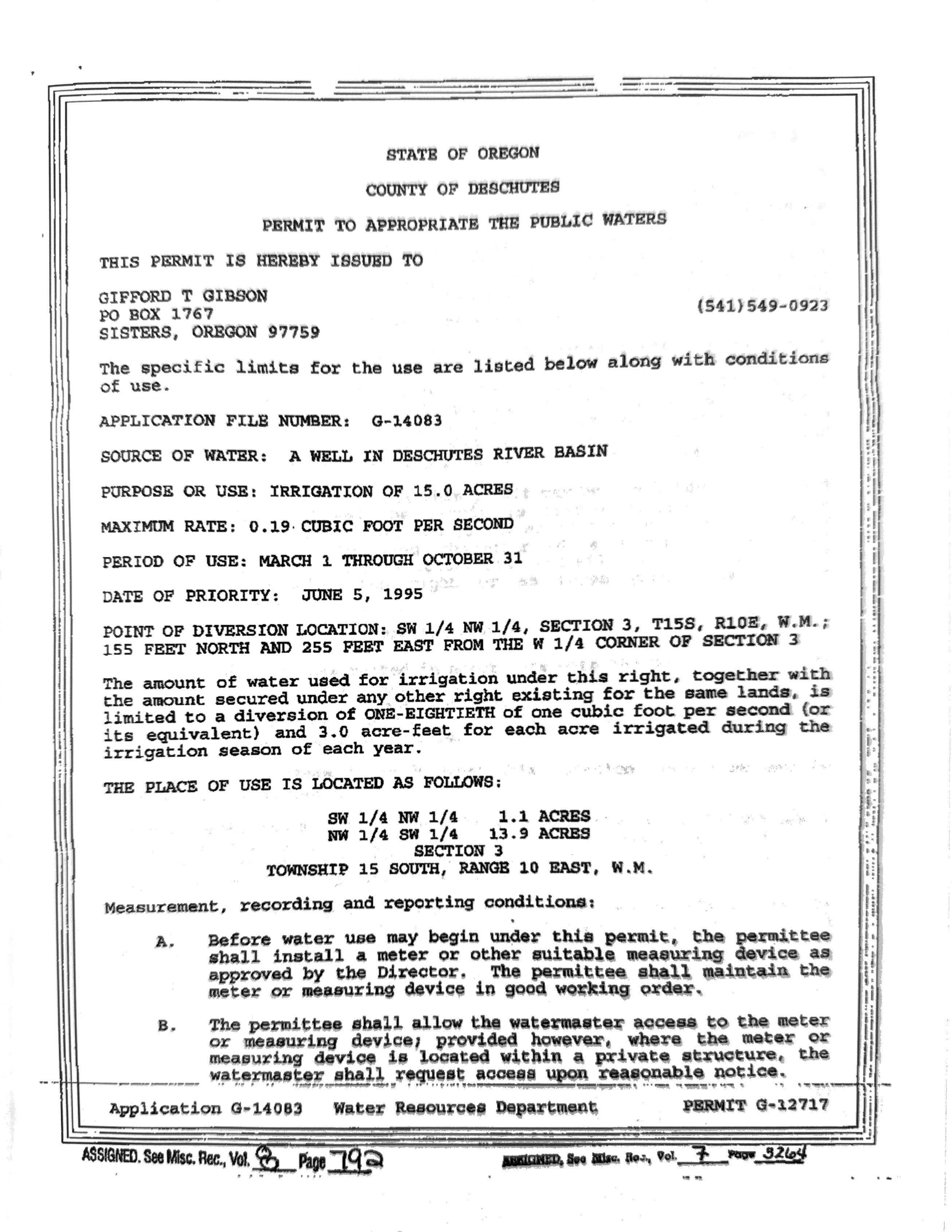 15 irrigated acres of ground water