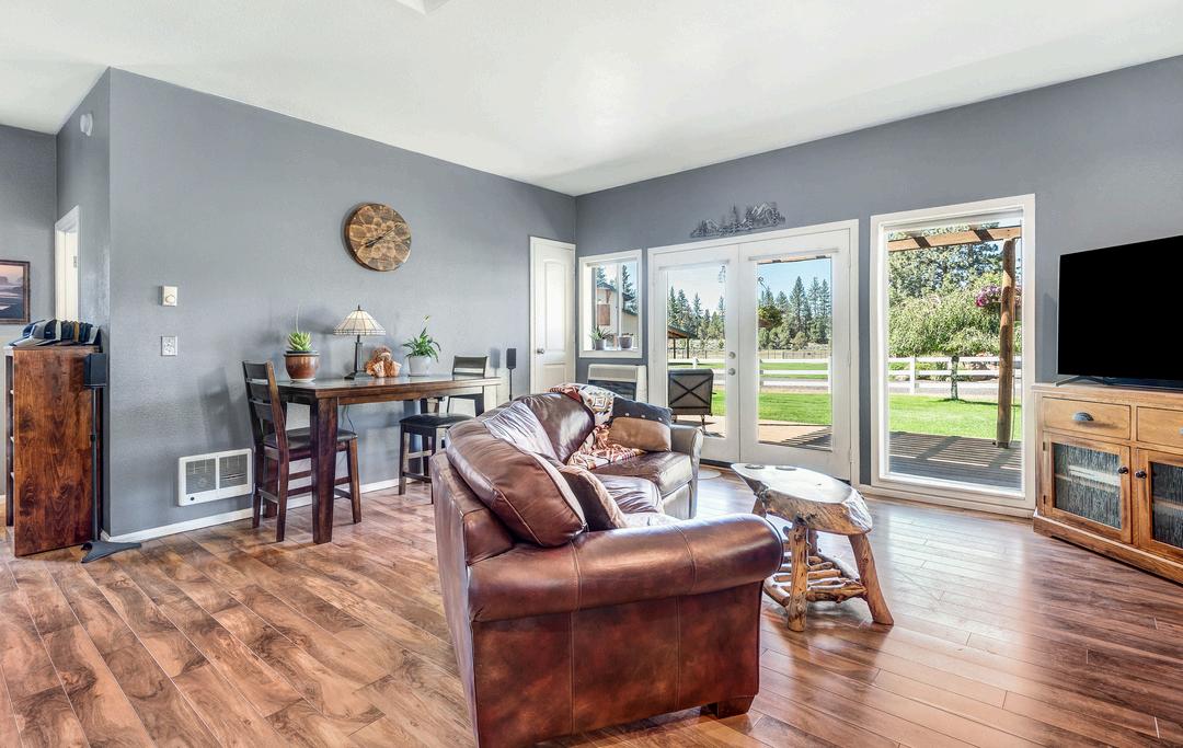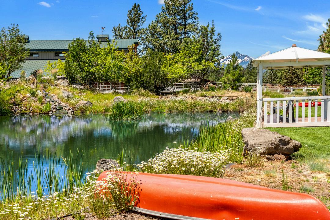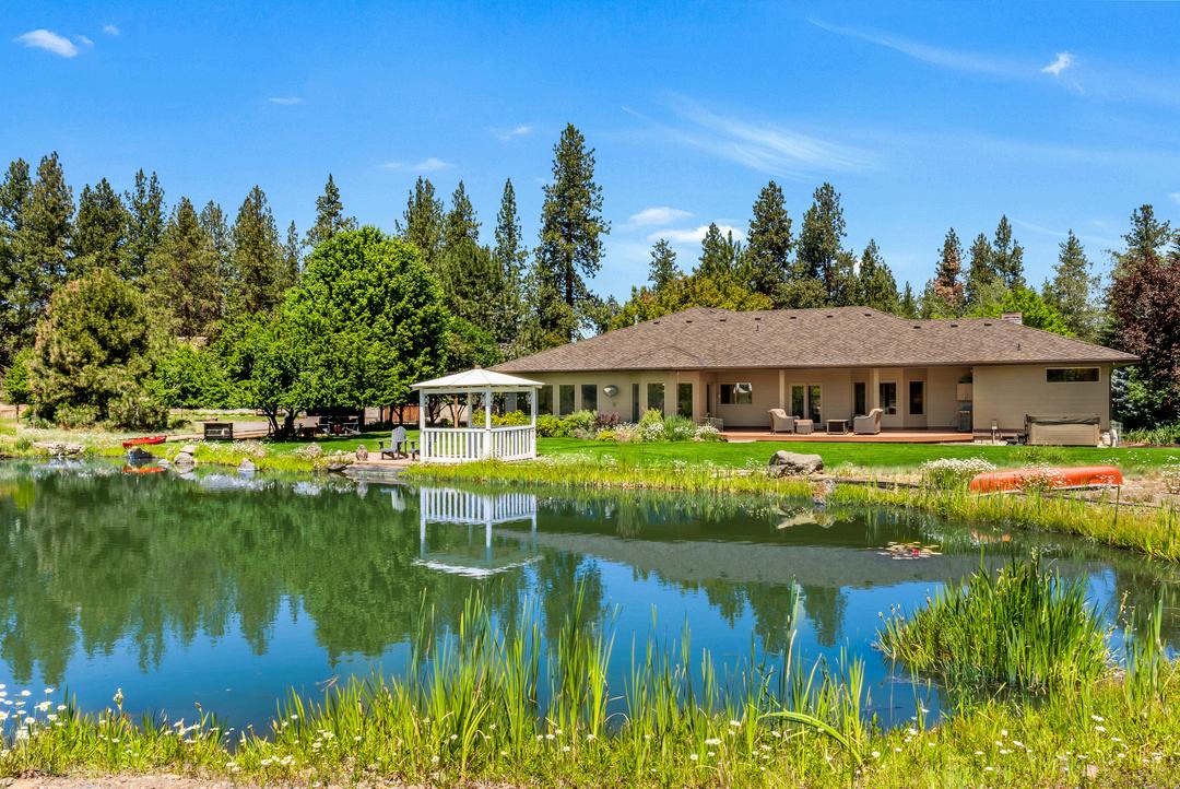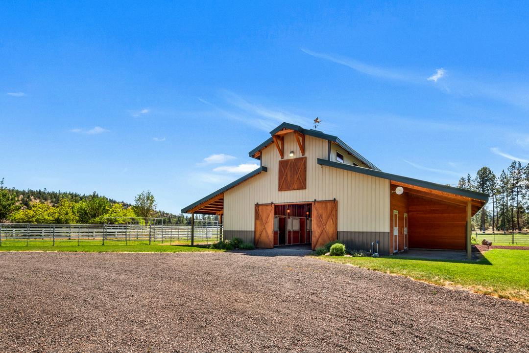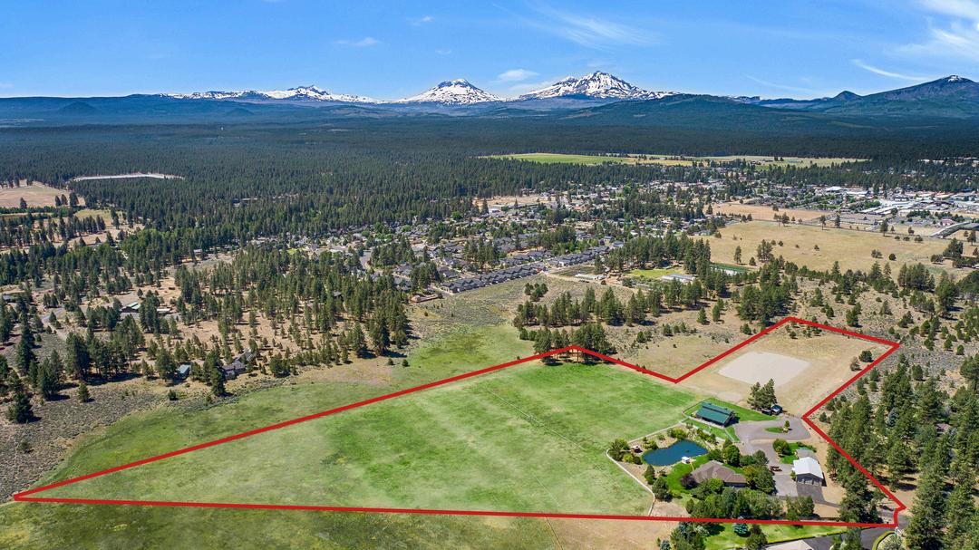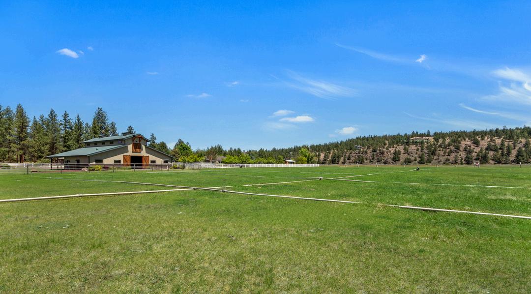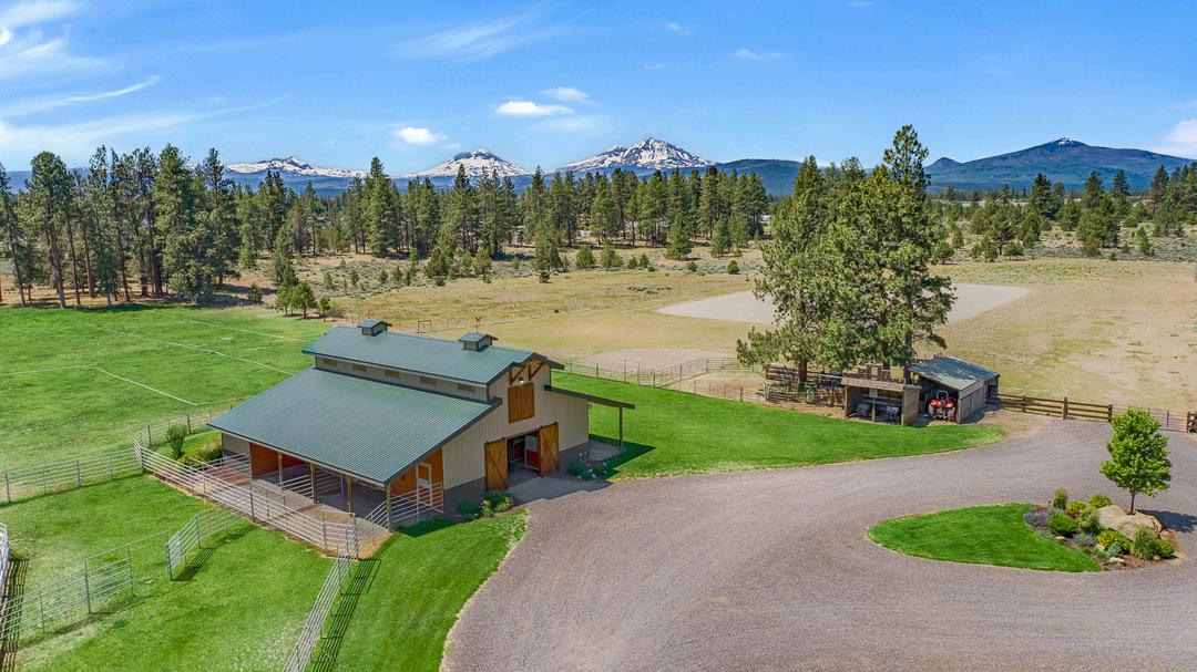 This breathtaking 20-acre estate includes two 10-acre parcels and is located less than a mile from Sisters! The home offers single-level living with great bedroom separation, two living rooms with wood and gas fireplaces, hardwood floors, new roof, updated furnace and a 3-car attached garage. The primary ensuite bathroom has heated floors, spacious double shower and a walk-in closet. Two wells - one with 15 acres of irrigation rights and another exclusively for domestic use. The barn is tremendous with its 6 stalls, Noble panels, automatic waters, H/C wash rack, hay storage, 1/2 bath and a heated finished flex space. Outside you'll find a 150'x250' arena with premium footing. There is an additional office studio with covered parking, a 40'x50' finished shop with 14' doors, two full RV hookups and a third with water and power. Enjoy the manicured backyard highlighted by expansive lined koi pond, working windmill, peaceful water feature, all set against the backdrop of the Cascades.