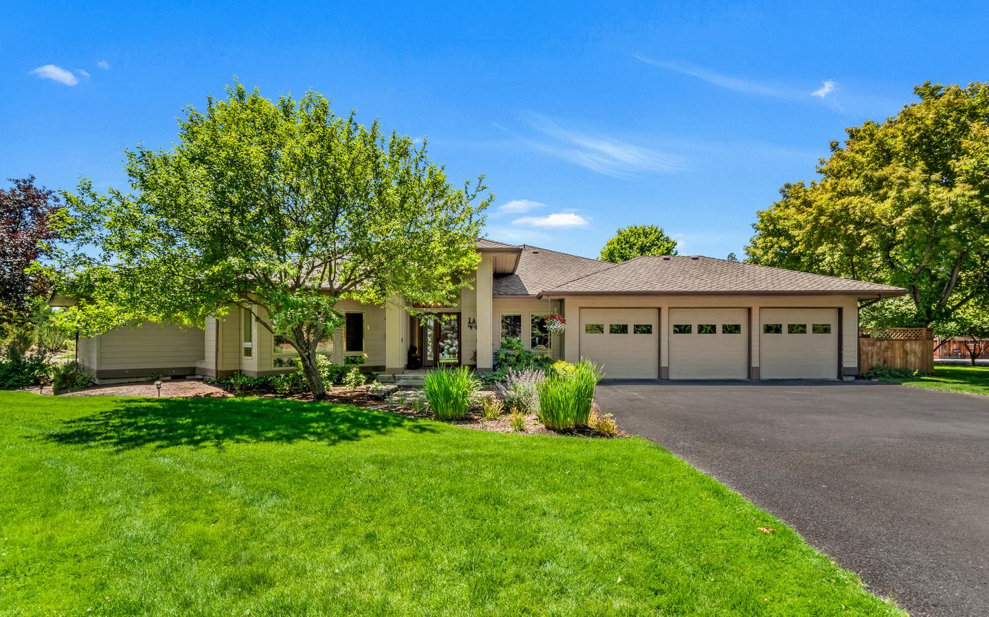 Single-story residence featuring an open-concept design that seamlessly connects the living, dining, kitchen, and family areas, plus a three-car garage