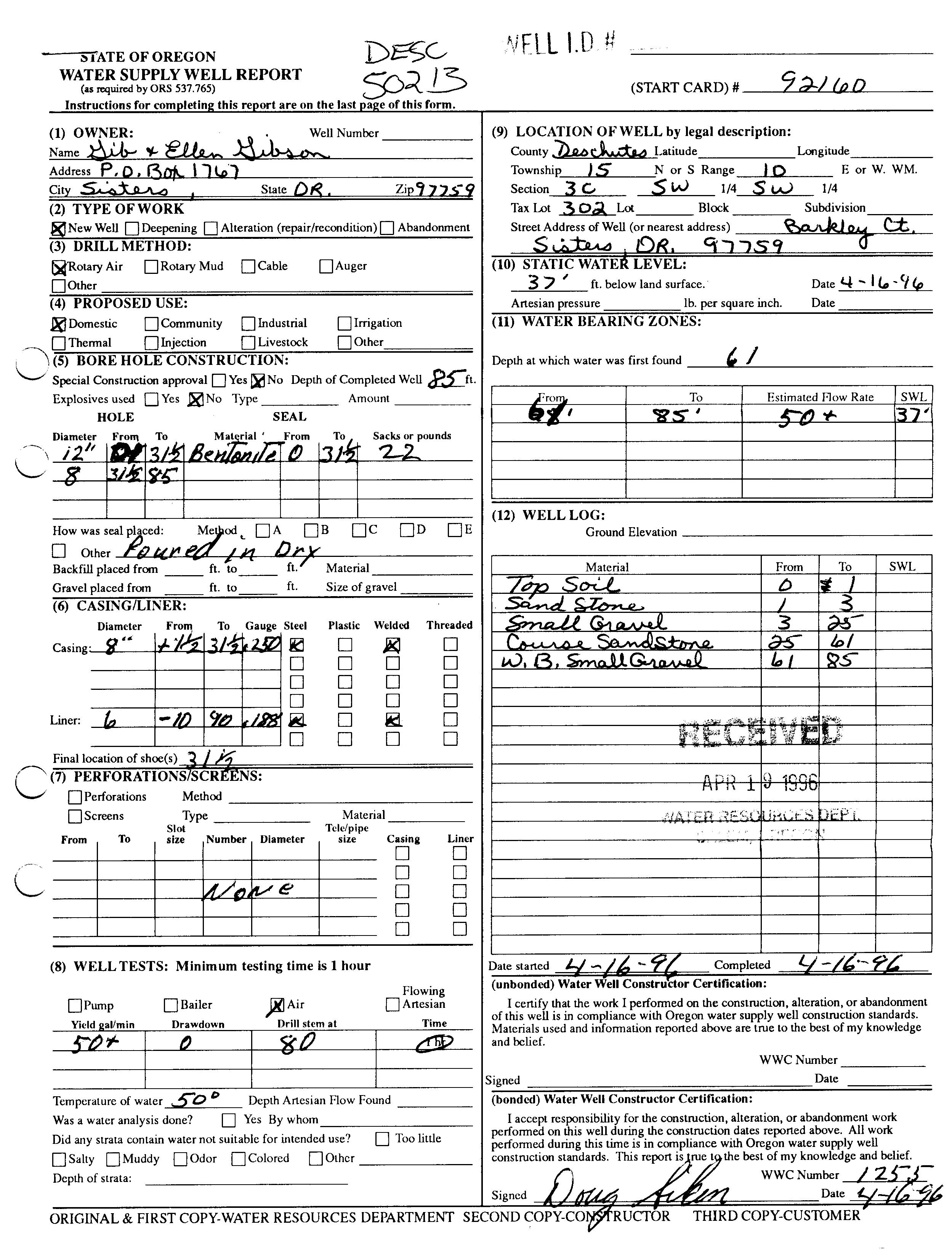 Additional domestic well on the property