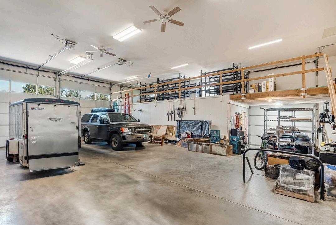 Fully finished interior with insulation and drywall throughout Comprehensive electrical system featuring numerous outlets, service pit access, and ceiling fans