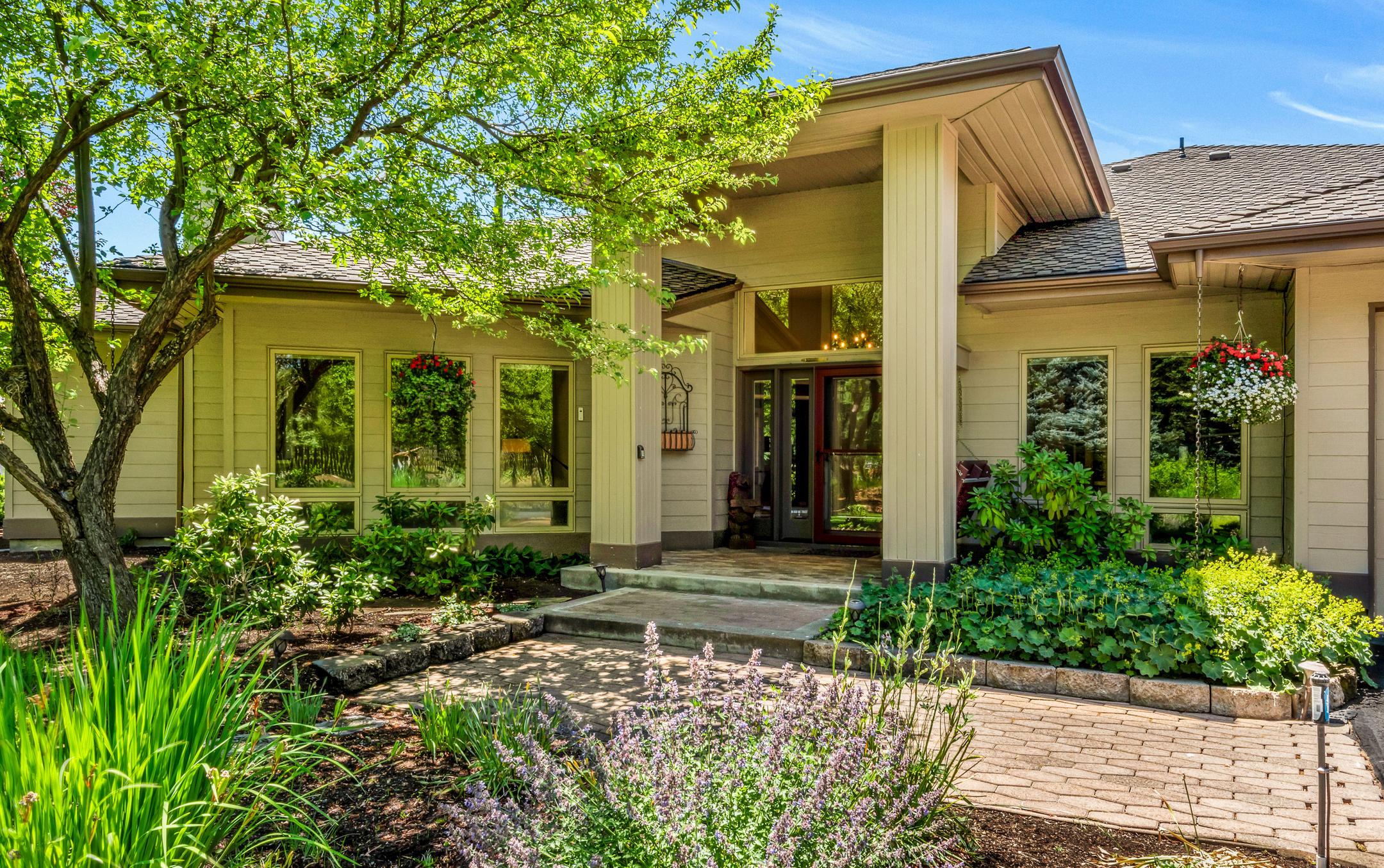 Professionally landscaped grounds featuring automated underground irrigation and drip watering systems